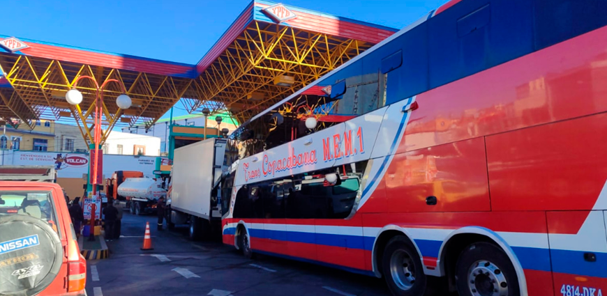La situación se repite en casi todas las estaciones de servicio de La Paz y El Alto, con cuadras de vehículos esperando por combustible.