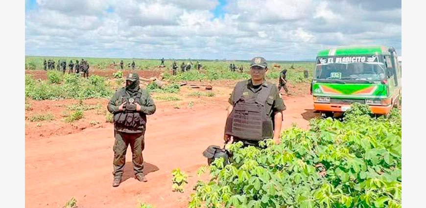 El viceministro de Régimen Interior y Policía, Jhonny Aguilera, informó que un contingente de 350 efectivos policiales resguarda desde la madrugada de este martes los predios avasallados en el municipio de Ascensión de Guarayos, departamento de Santa Cruz.