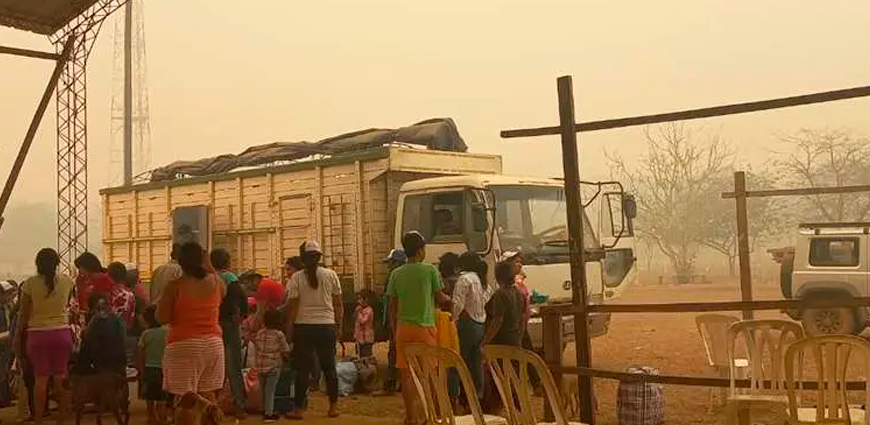 En la TCO Monte Verde, el fuego que amenazaba a comunidades obligó este jueves a la evacuación de 58 personas, entre niños, adultos mayores y mujeres de la comunidad que lleva el mismo nombre.