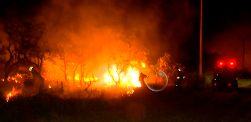 Diferentes equipos de bomberos llegaron hasta la zona del Urubó, Santa Cruz, ante el reporte de un incendio forestal de magnitud en el lugar.